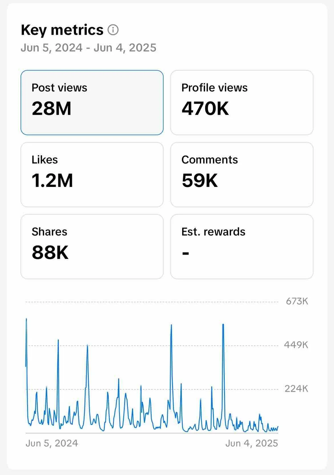 Got 28 million views on Tiktok in the last year (@tatipetkovic)
